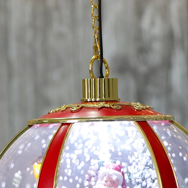 Hanging lamp with chain Snowing inside scene Top lace on the surface