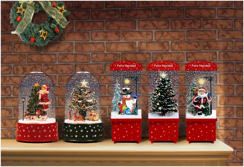 5. Different polyresin figures inside, such as Santa Claus, Tree, Caroling, Angel, Snowman, Windmill or House upon your requirement!