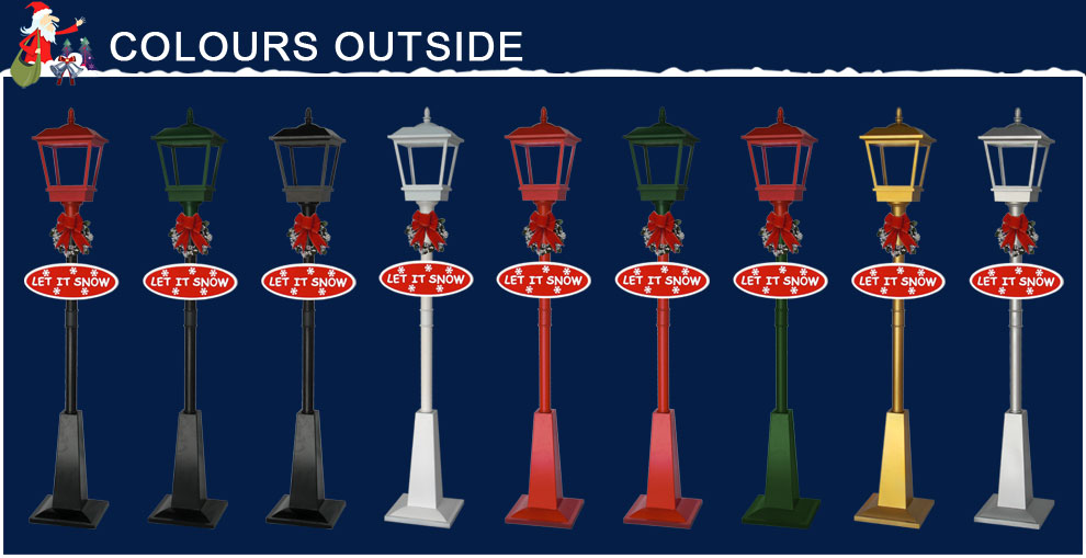 | 6) Color | Colorful santa claus inside, white lamp cap and white lamppost. |
