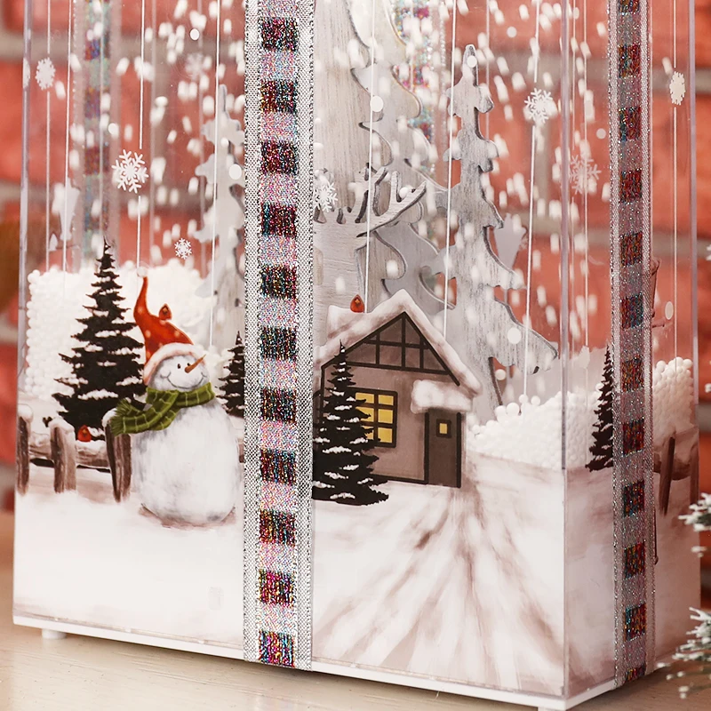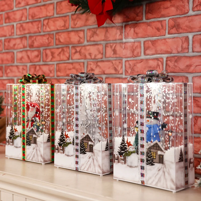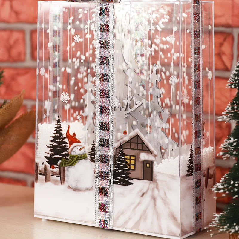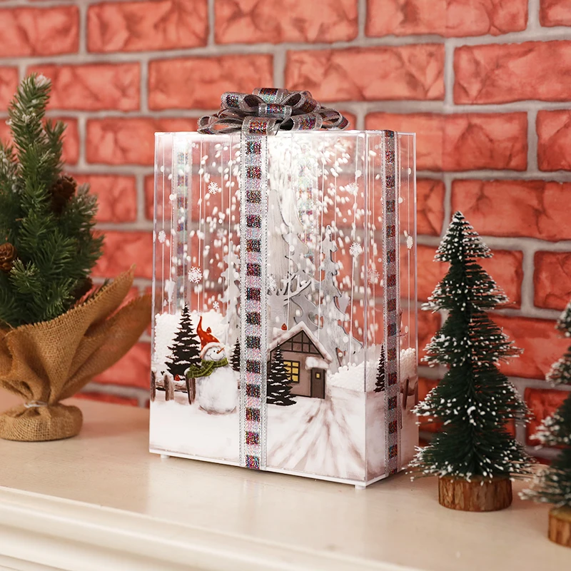 | 2) Item | Flat Shape Cheap Falling Snow LED and Musical Gift Box for Christmas Decoration |